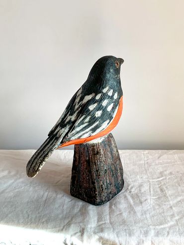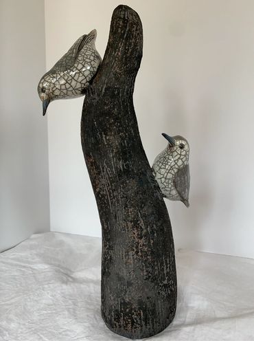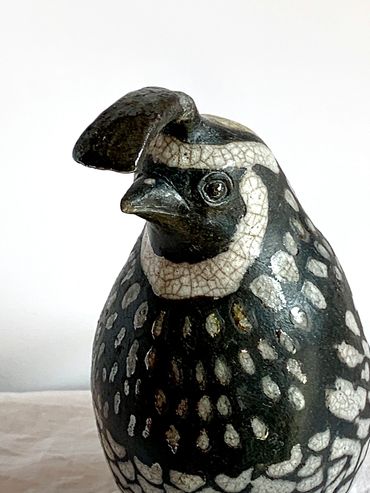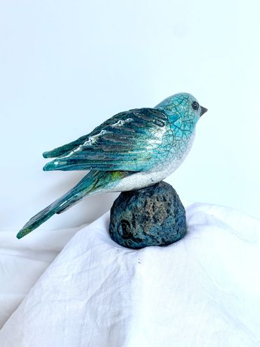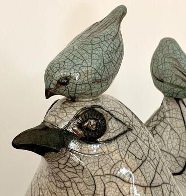 My appreciation for animals and nature inspired my passion for sculpting ceramics. I started sculpting roosters and hens, inspired by my lovely backyard chickens, and as I progressed my creations started to evolve into all different types of birds and animals. I bring each of the animals' unique characteristics to life using a Raku Firing technique, which creates unique patterns throughout the surface, and breathes movement into each piece.